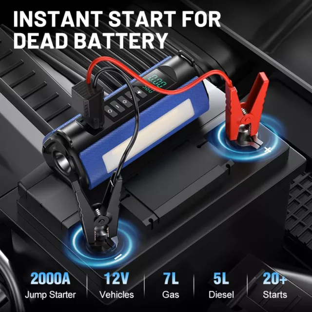 Equip your vehicle with this all-in-one jump starter, air compressor, and power bank. Don’t let a dead battery or flat tire disrupt your plans. Stay safe, prepared, and in control with this reliable and compact tool. Order now and experience the peace of mind that comes with being ready for anything!