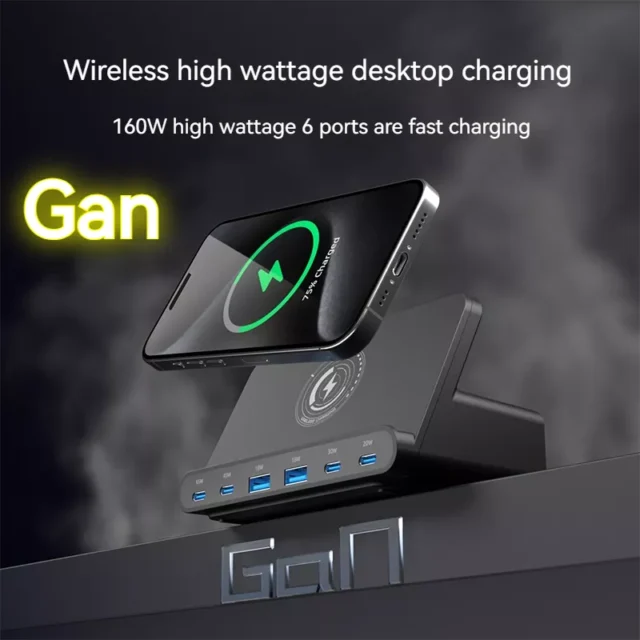 160W GaN PD Fast Charger with Wireless Charging for MacBook, iPhone, and Samsung