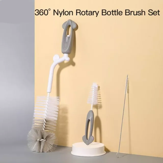 3-in-1 Rotating Nylon Baby Bottle Cleaning Brush Set