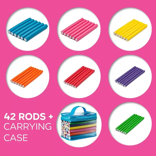 • Set includes 42 flexible curling rods in various sizes to create different curl styles