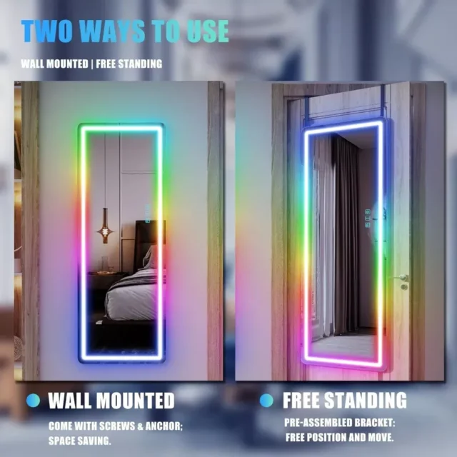 47″ x 18″ Full Length Mirror with LED Lights – Color-Changing Lighted Mirror