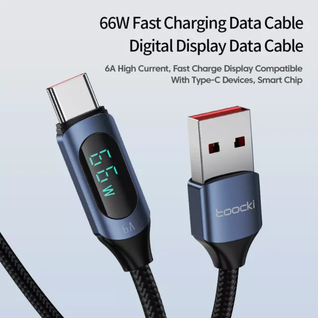 66W USB Type-C Fast Charging Cable with Digital Display for Smartphones