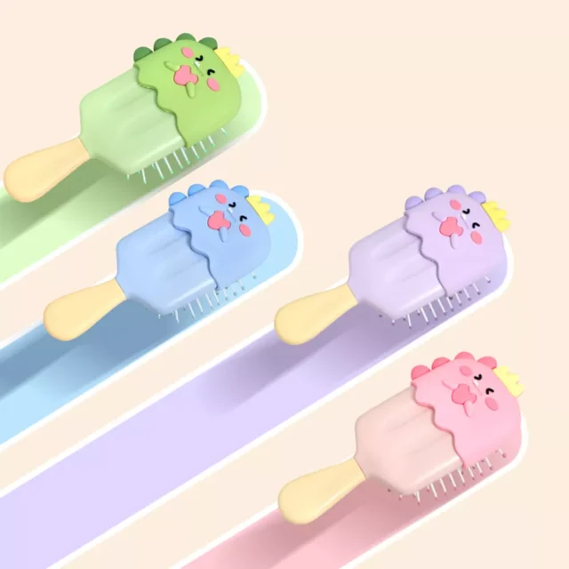Transform your daily hair care routine with the Adorable Dinosaur Air Cushion Comb, designed for girls who love a touch of fun and functionality. Shaped like an ice cream cone and featuring a delightful dinosaur design, this comb isn’t just a tool—it’s a stylish accessory that brightens your vanity and your day! Whether you’re detangling locks or perfecting your hairstyle, this lightweight, portable comb makes it all a breeze.