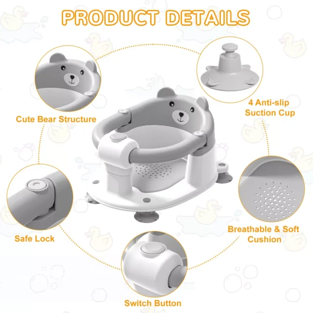 • Non-Slip Design: Equipped with a sturdy non-slip base, this bath seat stays firmly in place, ensuring maximum safety during use.