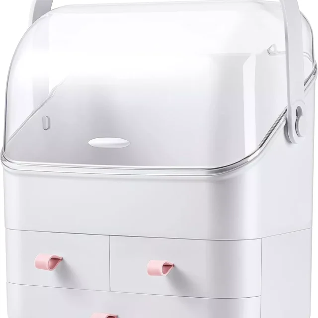 Cosmetic Storage Box stands out with its premium PET material, elegant design, and thoughtful features. The two-way flip clear lid, large capacity storage, and portable handle make it a must-have for beauty enthusiasts. The dustproof and waterproof cover ensures your cosmetics stay tidy and clean, adding a touch of luxury to your beauty routine.