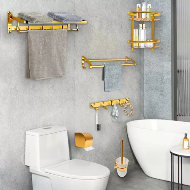 With our Gold Space Aluminum Bathroom Accessories Set, transform your bathroom into a haven of elegance and convenience. Don’t settle for ordinary when you can elevate your bathroom’s look and functionality with this exquisite set. Order now and take the first step towards a more organized, stylish, and serene bathroom experience.