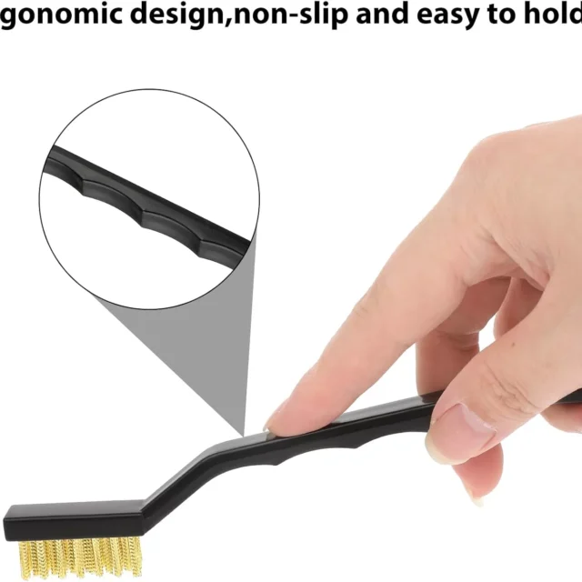 This brass wire brush set is perfect for various applications, including: – Cleaning rusted tools, machinery, or grills. – Removing welding slag and prepping metal surfaces. – Scrubbing tough grime from industrial equipment. – Household tasks like cleaning tile grout or outdoor furniture.