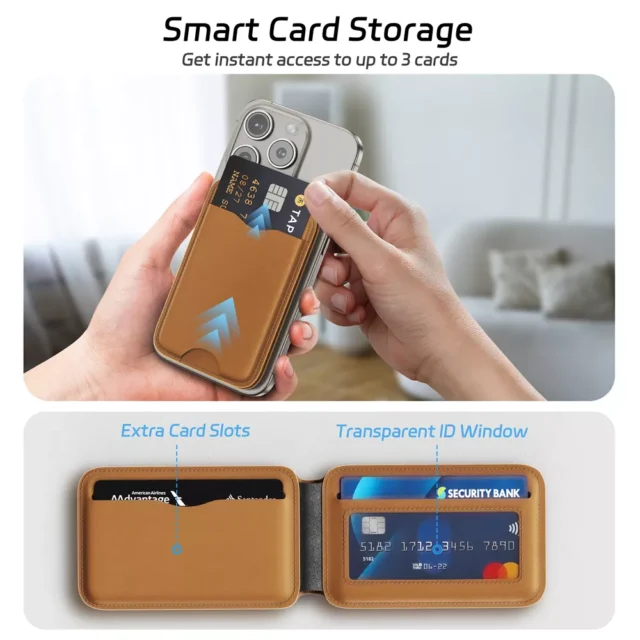 This wallet isn’t just functional; it’s a statement piece. The rich textures of full-grain leather, available in elegant colors like Tan, Vintage Brown, and Black, make it a stylish accessory for any occasion. The folding stand feature turns your phone into a mini entertainment hub, whether you’re binge-watching shows, attending a virtual meeting, or following a cooking tutorial. The quick-attach magnetic system ensures seamless usability, so you’re always ready to go.