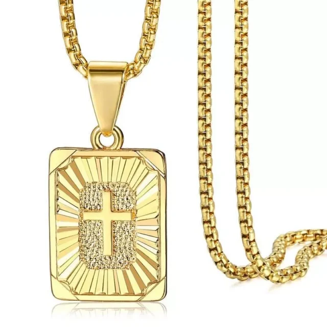 Introducing our New Gold Square Christian Cross Pendant Necklace – a symbol of faith and a stunning accessory that transcends style boundaries. Crafted with precision and passion, this necklace is designed for both men and women who appreciate the fusion of religious significance and contemporary fashion.