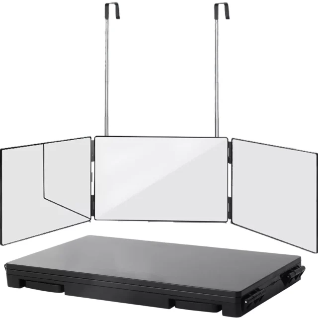 Portable 360° Trifold Mirror with Adjustable Telescoping Hooks – Perfect for Makeup & Hair Cutting