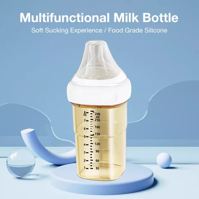 Make every feeding moment enjoyable and safe with this premium BPA-Free PPSU Baby Feeding Bottle. Crafted from high-quality German PPSU material, this bottle is a trusted choice for parents who prioritize their baby’s health and comfort. The natural amber golden color of the bottle reflects its superior material, ensuring no pigmentation or harmful chemicals like BPA. Designed for babies aged 0 months and older, this 8oz (240ml) feeding bottle combines functionality, safety, and style.