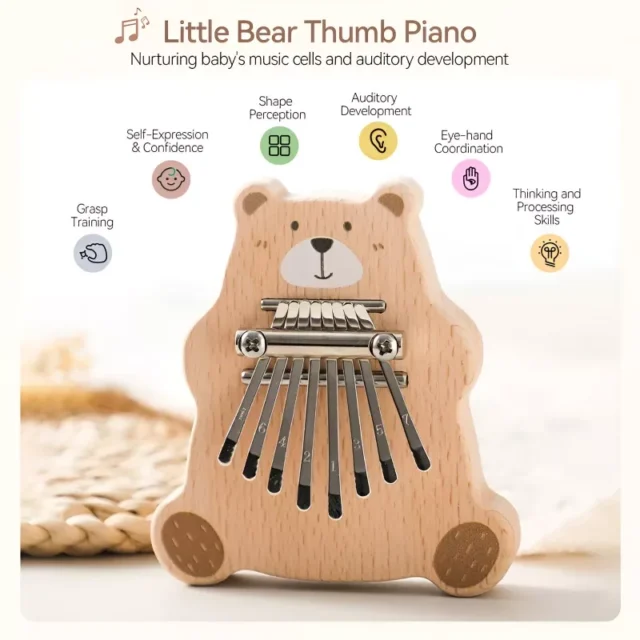 The Wooden Cartoon Bear Thumb Fiddle is more than just a toy—it’s a tool for your child’s growth! Whether your child is just starting to explore music or already has an interest in instruments, this thumb fiddle will spark curiosity and creativity. The octaves and playful design make it perfect for young learners to experiment with sound and rhythm. Plus, its non-electric design means no distractions, allowing your child to engage more fully in their learning and play.